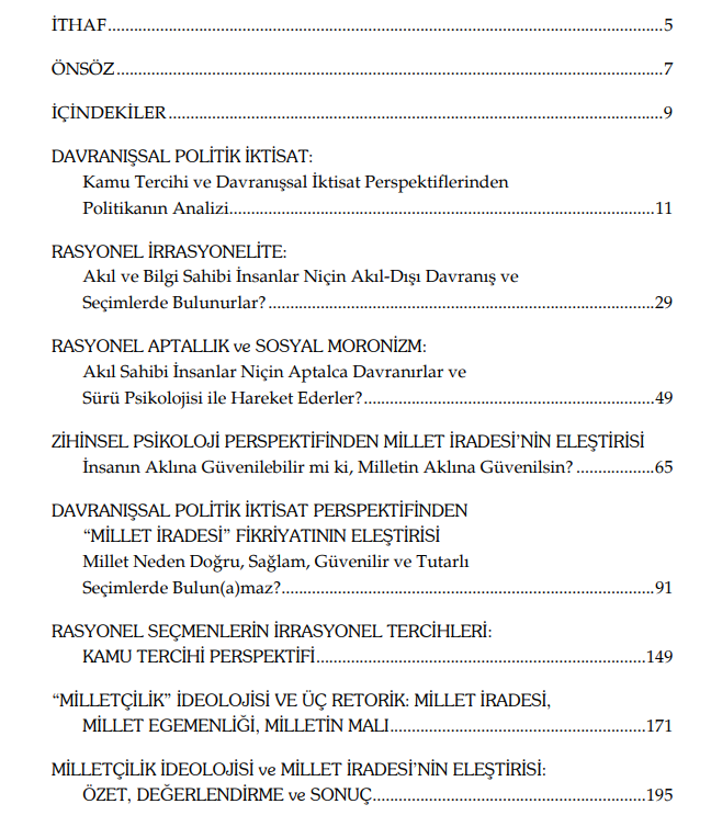 Kitabın Adı: Davranışsal Politik İktisat: Kamu Tercihi ve Davranışsal İktisat Perspektiflerinden: Politikada Rasyonalite ve İrrasyonalite: Millet İradesi ve Milletçilik İdeolojisinin Eleştirisi